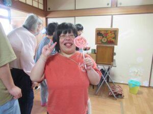 紙芝居が終わった後には、水あめを頂きました。