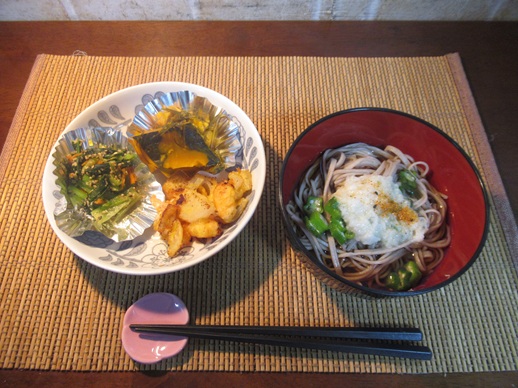 ・ぶっかけそば(オクラ、長いも、えびかけ揚げ)