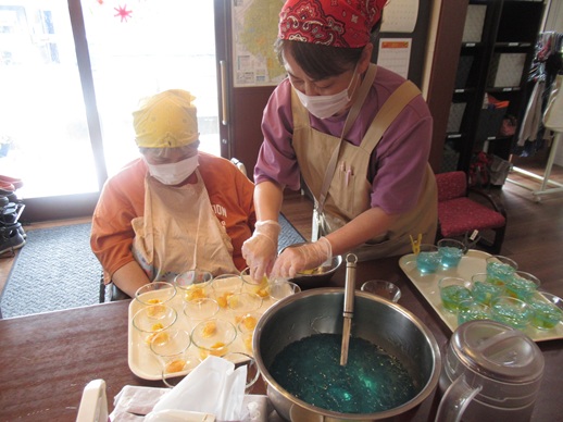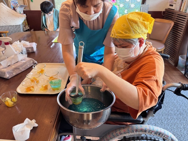 もちろん味はしょっぱくはなく、爽やかなラムネ味で、おやつの時間にはご利用者様とスタッフに笑顔が広がりました。