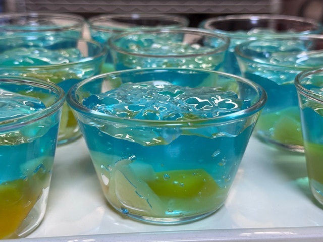 きれいな色のゼリーを、カップに一つひとつ入れてくださって、並んだ様子はまさに海そのものでした。