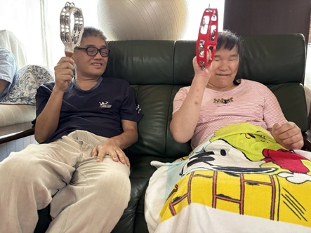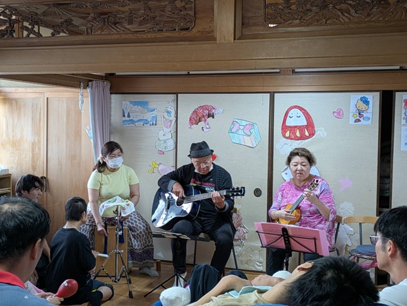 ご利用者様のニコニコとした表情と、楽器を持って一緒に楽しむ姿が印象的でした。
