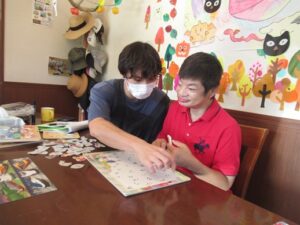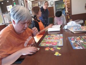 本日は、多くのご利用者様がカフェスペースでパズルに取り組まれました。