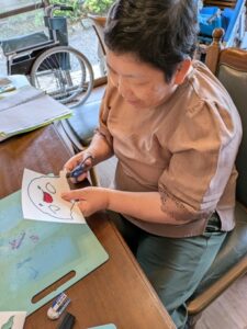 柔らかな日差しに包まれながら、ご利用者様各々のペースで好きな色を広げました。