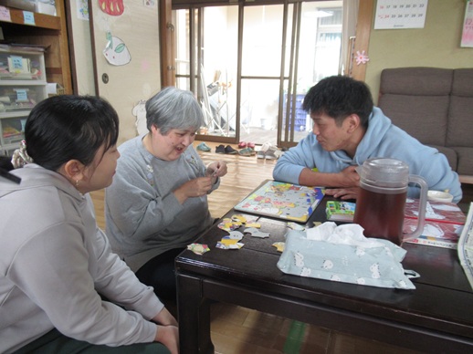 キッチンでおやつ作りが進む中、和室では来週のカラオケ外出に参加されるご利用者様が、歌いたい曲のリストアップをしておられました。