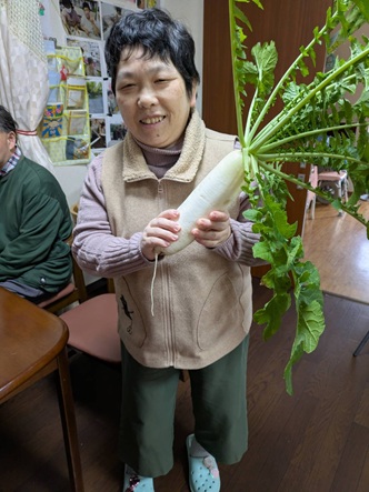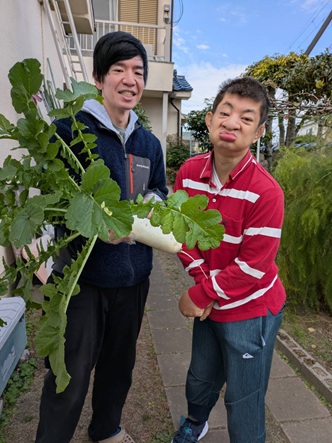 収穫した大根の葉の部分は今日のランチで使用し、白い部分(根っこと茎)は明日のランチで使用する予定です。