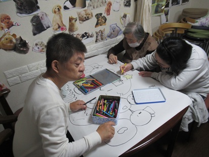 室内組は、クリスマスの巨大絵の塗り絵をしました。