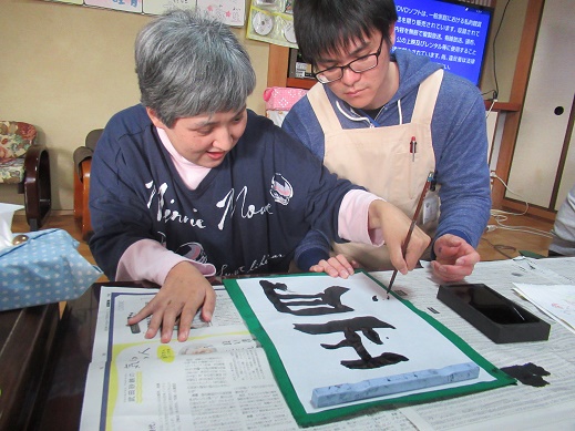 シンプルに「正月」と書いたり、今年の目標を書いている利用者さんもいました。