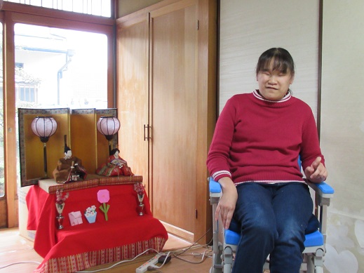 雛人形を部屋の奥に飾っている関係で利用者さんが雛人形よりも前になるので、
