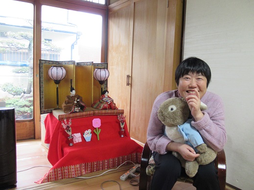 まだ雛人形を飾ってあるので女性の利用者さんと一緒に写真を撮りました。