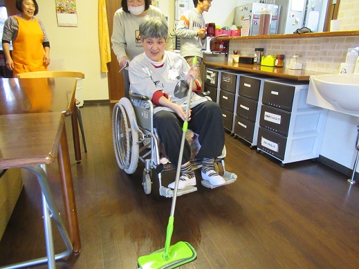 夕方には利用者さんがモップ掛けを手伝ってくれました!