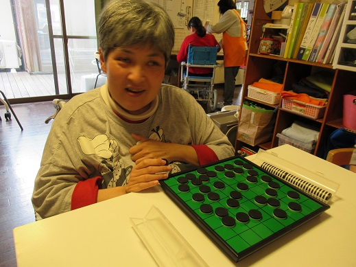 オセロを並べています。最初に黒から並べ始めて、すべての駒を置いたらひっくり返すという