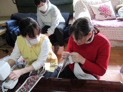 昨日から車椅子のタイヤカバーの裏地を縫っていってます。