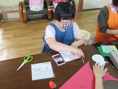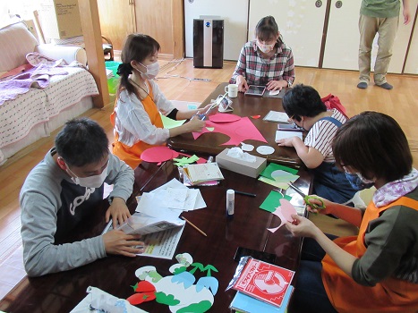 利用者様やサポーターさんと一緒にお話ししながら、いちごや柏餅、チューリップの花など、