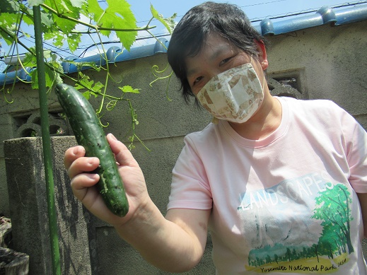 しかしそんな暑さも手伝ってサポネの家畑で今年初のキュウリが収穫できました!めでたい!