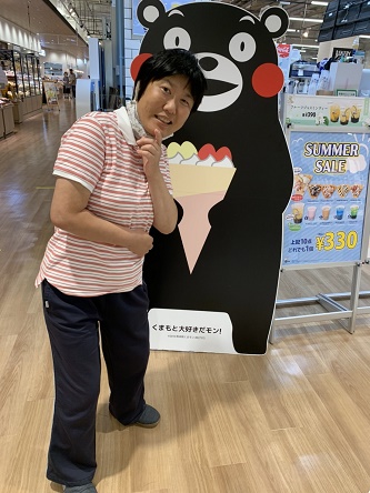 帰宅前にくまモンボードの前で記念撮影をしました。