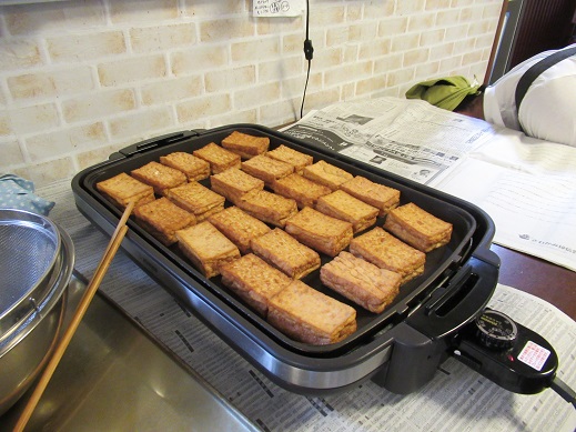 厚揚げを調理中です。