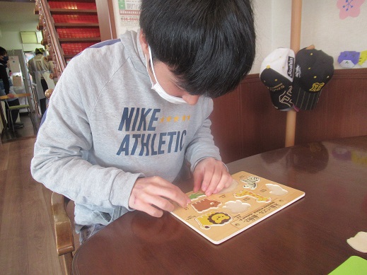 パズルはあっという間に完成させてしまう利用者さんがいたり、