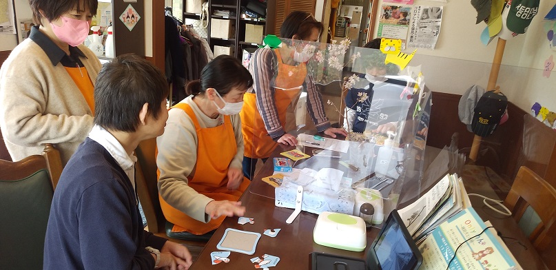 午後にカフェで男性の利用者さんと一緒にパズルやたこ焼きゲームを行いました。
