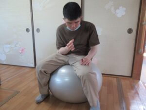 バランスボールを使って運動をしました。