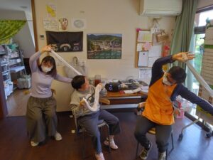 午前中はタオル体操を行いました。