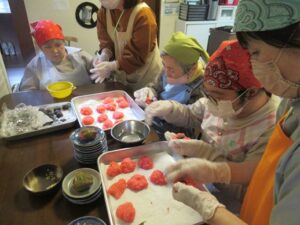 午後から利用者さんと一緒にさくらもち作りを行いました。