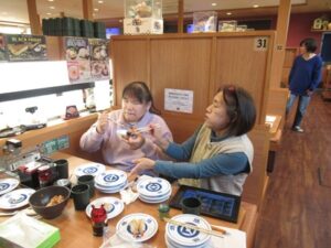 スタッフが一つ一つ利用者さんに食べたいネタを聞いて食べていたり、平日限定でしかない海鮮丼を食べたりされていました。