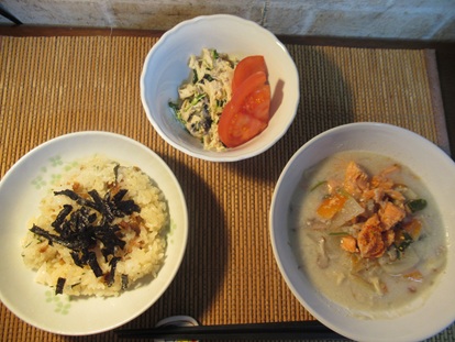 ヘルパーの方と3人でいろんな話をされ、ランチも一緒に食べ、楽しそうに過ごされていました。