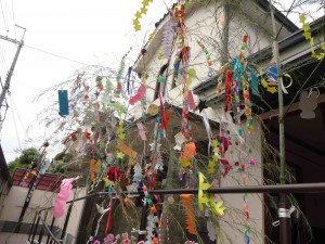 玄関先にみんなで作った飾りや短冊がいっぱい