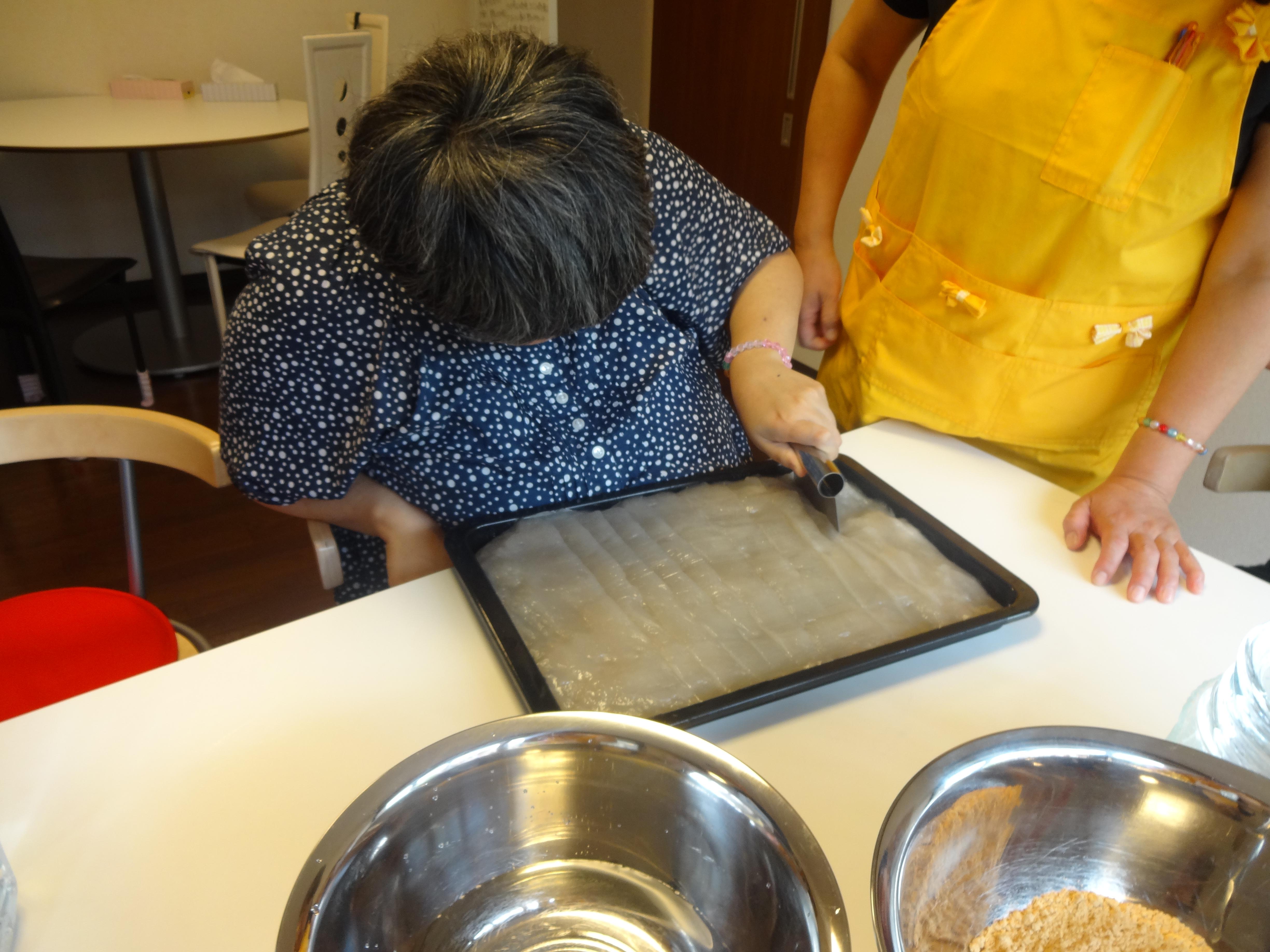 今日は他にもわらび餅づくり、歌の演奏会(ギターの得意なスタッフが演奏してくれました!)と盛り上がりました。>