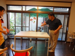 僕は今日、通所者さんの一人と初めて卓球をしました。30分くらい続いてお互い汗だく。